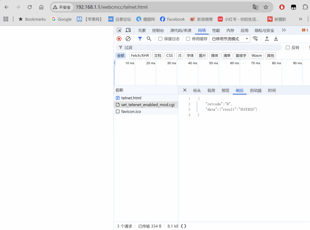 http://192.168.1.1/webcmcc/telnet.html打开之后页面不会有东西显示,你可以直接打开控制台查看请求: